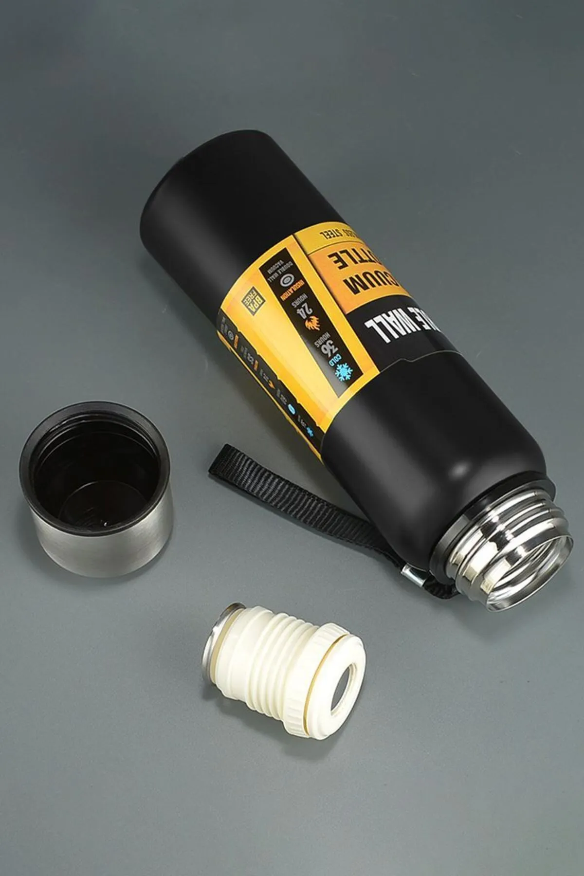 •برند: نوشته‌ی قابل مشاهده “VACUUM BOTTLE” و عبارت “DOUBLE WALL”
